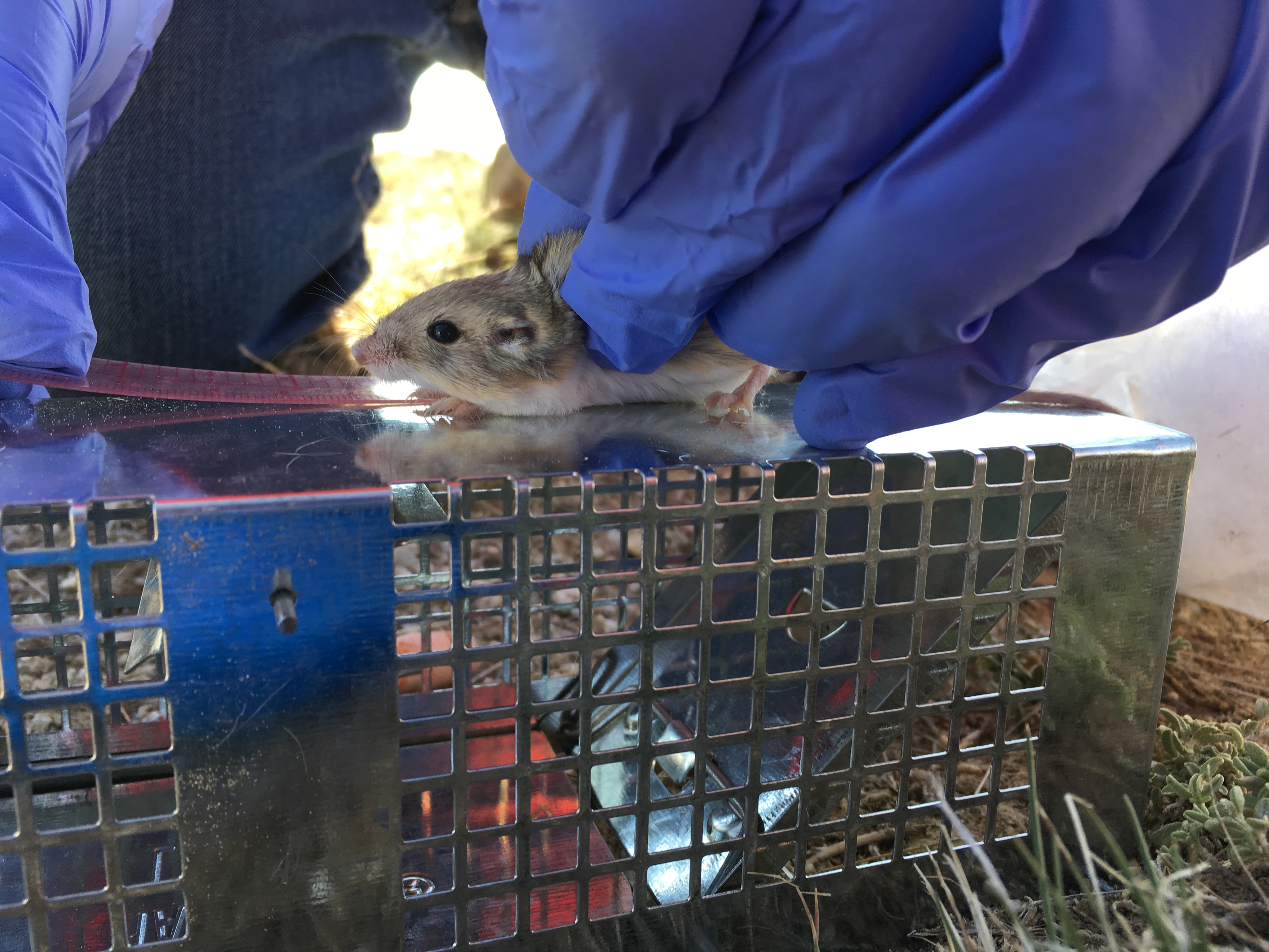 To increase the chances of capturing these rare species, Game and Fish is using information from recent research from University of Wyoming graduate student Kristina Harkins. She documented increased trapping success for the elusive pocket mouse using an uncommon trap and bait combination- a mesh-sided Havahart trap baited with birdseed. The granivorous pocket mouse seems to prefer bird seed to more commonly used baits, such as peanut butter and oats.